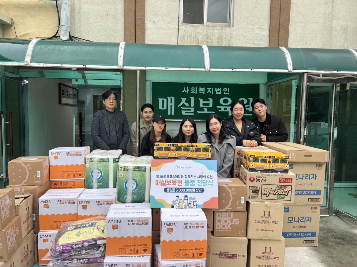블랙 프라이데이 수익금과 플로우 코스메틱의 기부금을 함께 모아서, 70년 역사를 자랑하는 매실 보육원을 방문하여 기부했습니다.